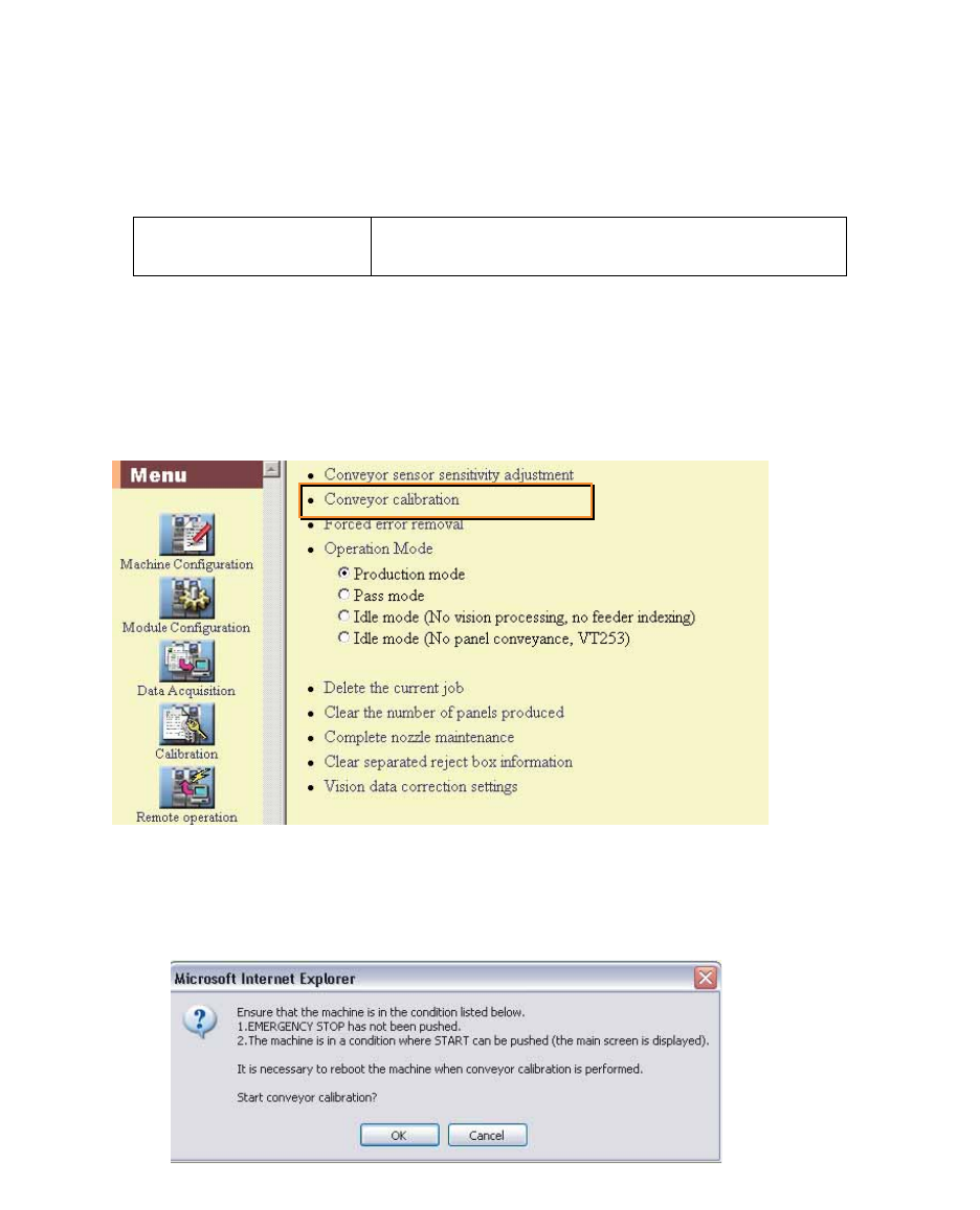 2. 单击 [Conveyor calibration]。