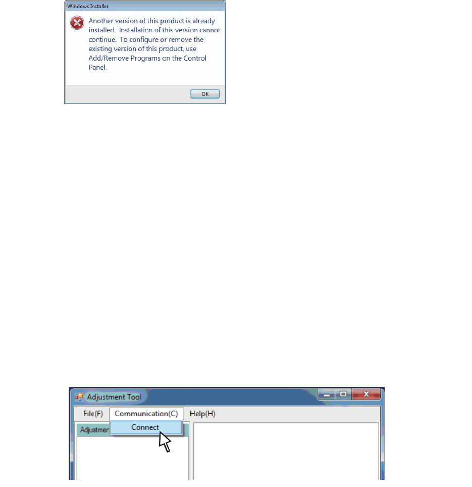 PC 中安装了旧版本的 Motion Adjustment Tool 时,请事先将其删除。如果未删除,屏幕上将显示如下的