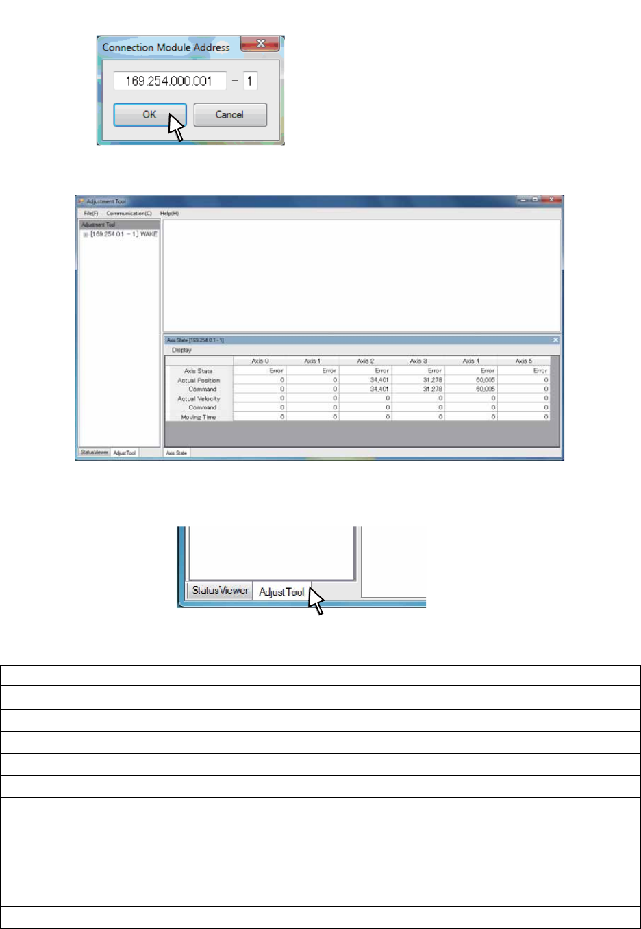 请启动 Adjustment Tool,连接到对象模组后进行以下的操作。
