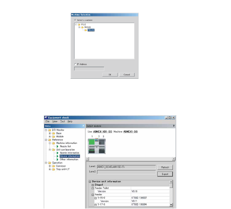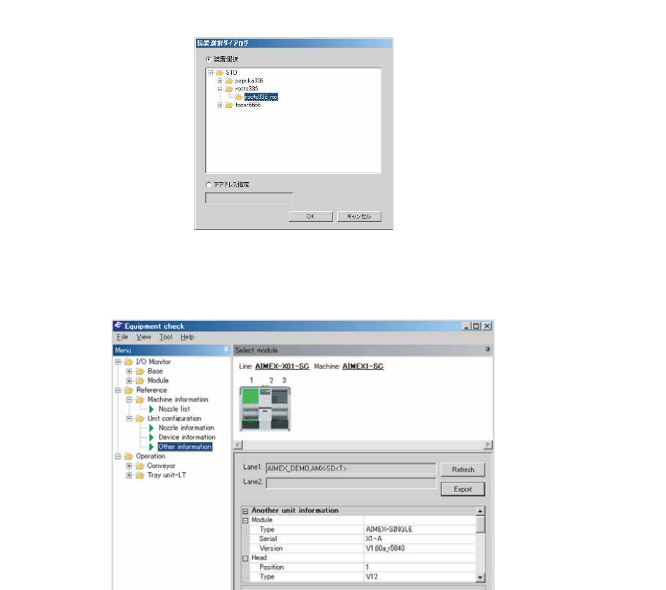 Equipment Check 能够在生产中参照被安装在模组中的吸嘴信息、各单元的序列号和固件版本等的单元配