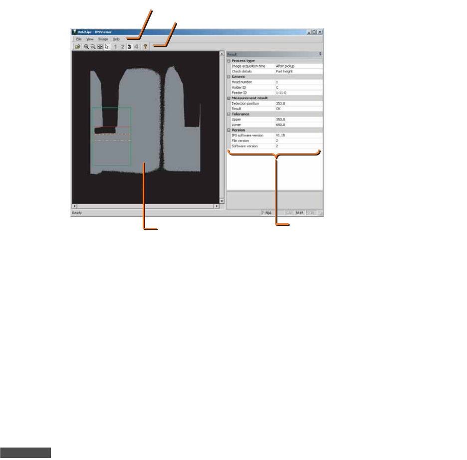 9. 各种软件工具的使用方法 SYS-AIMEX3C-007S0 312 AIMEX III/AIMEX IIIc 系统手册 显示吸嘴的判定结果 IPS 有以下的 3 种类型,所显示内容各不相同。 从这些影像中指定判定范围,就可以 显示吸嘴的判定结果。要指定范围时 ,请选择工具栏的范围号码。 范围号码和影像内范围的位置 关系如下所示。另外,IPS1 固定为范围号 码 1。 1676 ,36 ᰒ⼎ḍఈⱘᕅڣ ᰒ⼎ḍ…