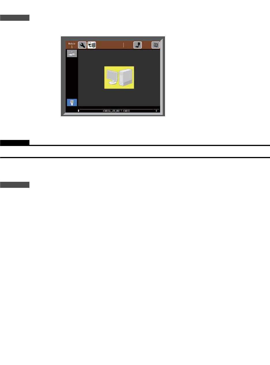 10. 更新软件版本 SYS-AIMEX3C-007S0 324 AIMEX III/AIMEX IIIc 系统手册 5. 请确认操作画面上是否显示以下的示意图。 6. 请启动辅助软件,显示在线监视器。 7. 请再监视画面上点击需要升级的机器,然后画面会变 为机器辅助软件的注册画面。 8. 直接输入用户 ID 或从选择框内选择 ID。 9. 输入用户密码然后点击 [ 注册 ]。显示菜单画面。 10. 选择所有的模组,单击 [Remote…