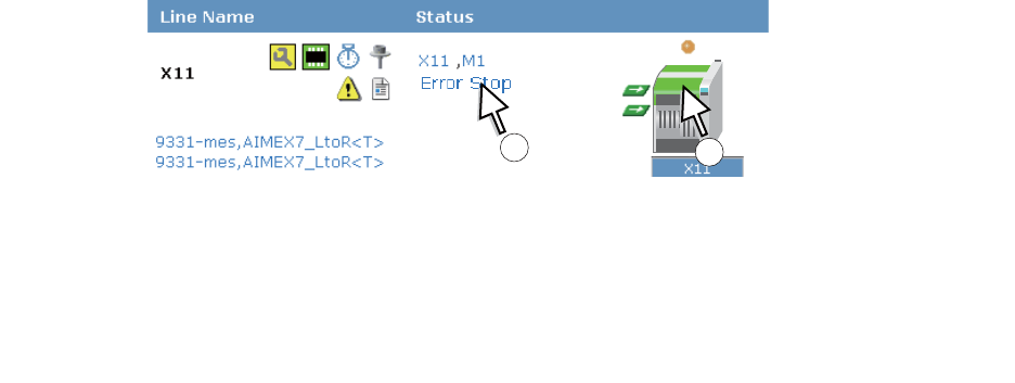 请在辅助软件的在线监视器中选择发生了错误的模组,点击 [Error Stop] 的文字。显示错误信息。