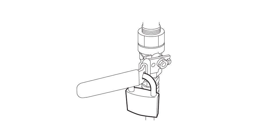 4. 同样将空气阀手柄旋转至 OFF 位置,锁上挂锁。请开始作业的人员都将写有各自名字的标签绑在挂锁
