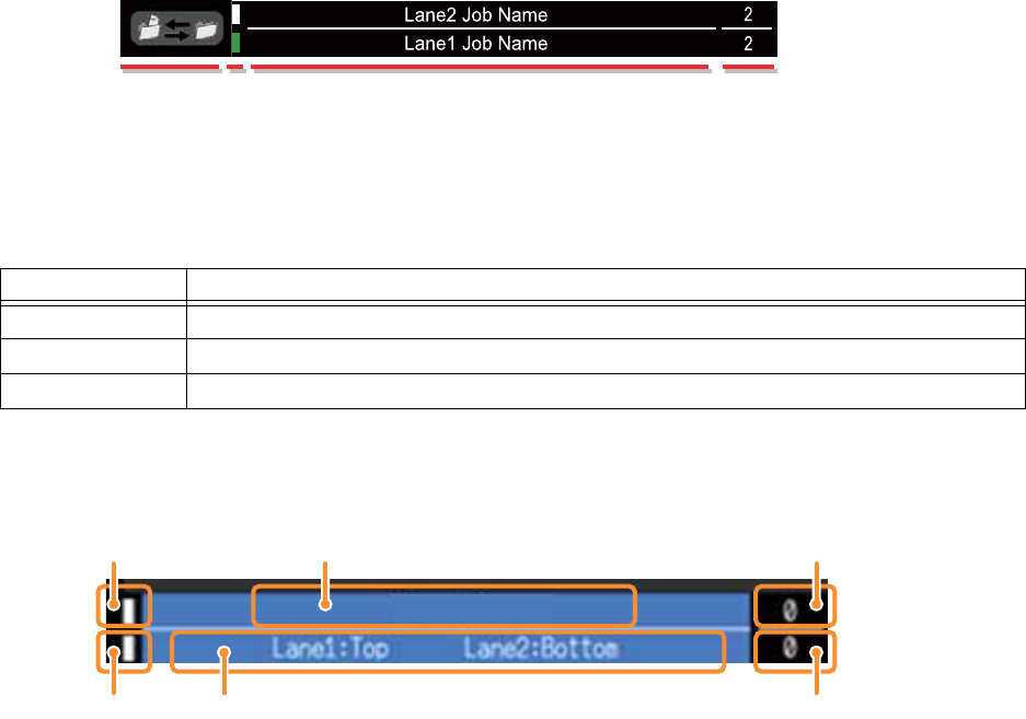 显示已上传到机器的 Job 名。上段显示通道 2,下段显示通道 1。除此之外还显示通道上是否有电路板以