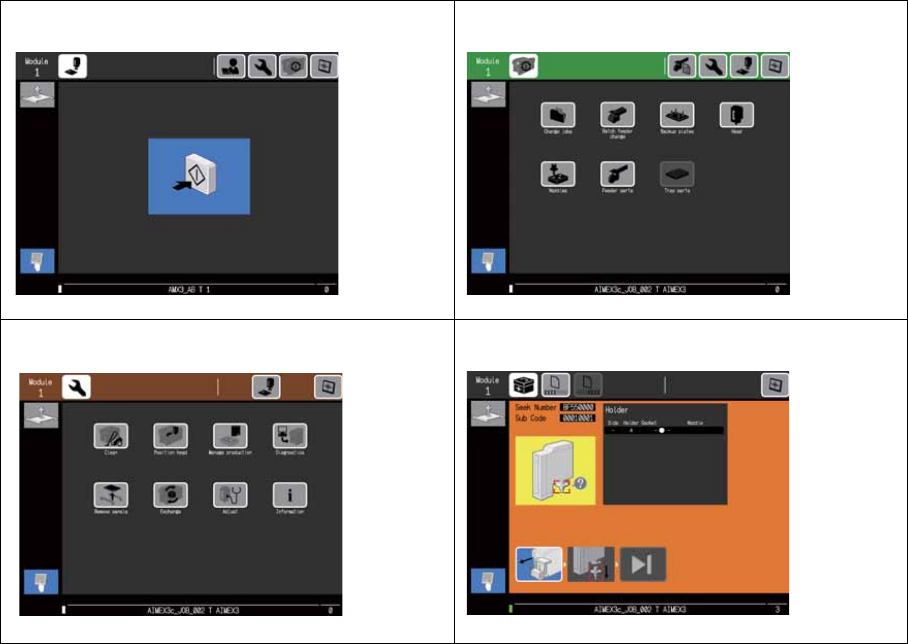 2. 各部分的名称和功能 SYS-AIMEX3C-007S0 34 AIMEX III/AIMEX IIIc 系统手册 D: Job 显示区 显示已上传到机器的 Job 名。上段显示通道 2,下段显示通道 1。除此之外还显示通道上是否有电路板以 及生产块数的信息。 通过显示的颜色判断通道上是 否有电路板。 正反面随机生产时的 Job 显示栏 a. 在各通道上生产的电路板面 • 上传 Job 之后,立即显 示 「Lane1:Top」 「L…