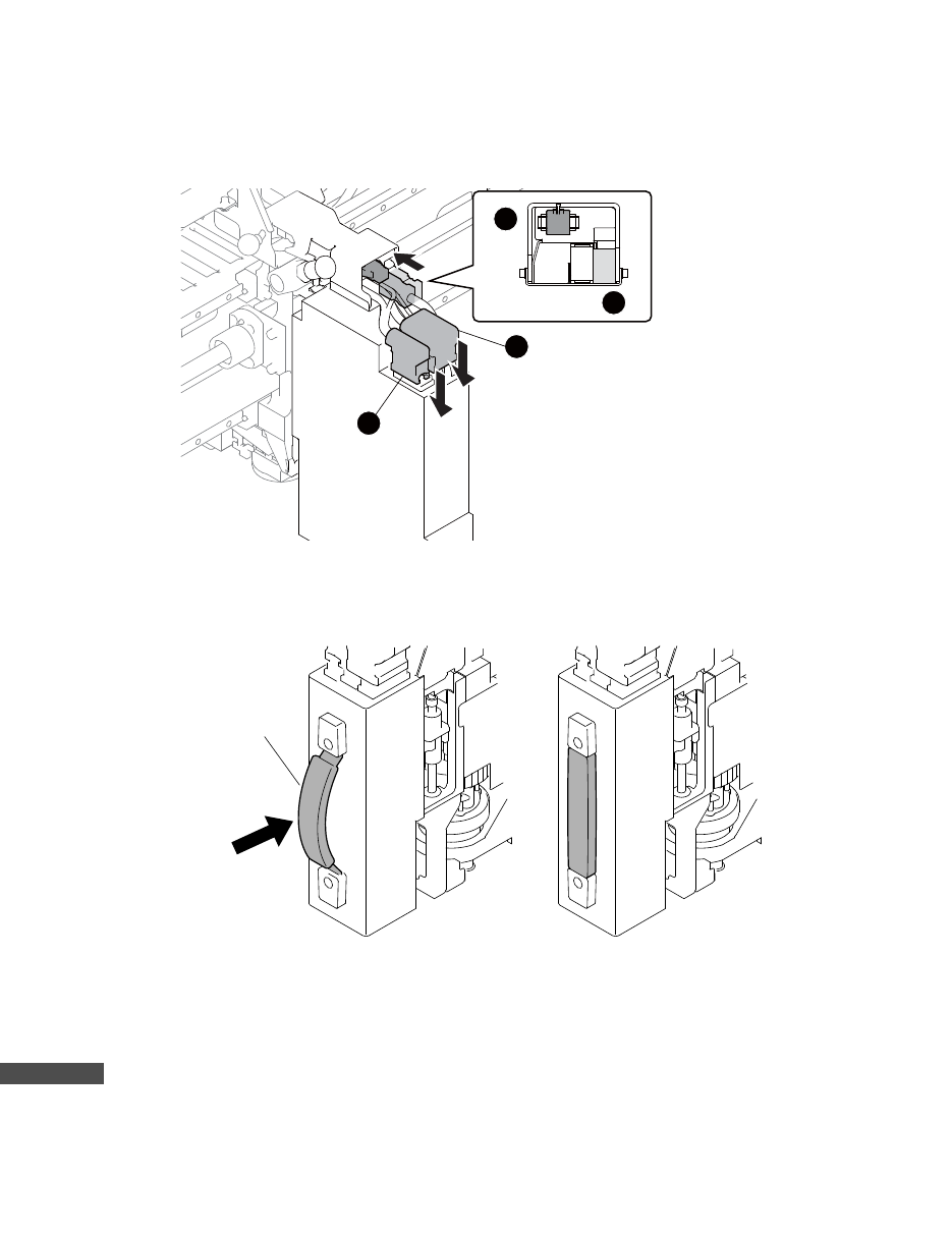4. 将导线通道向上抬起的同时提起把手,再将导线通道放下。