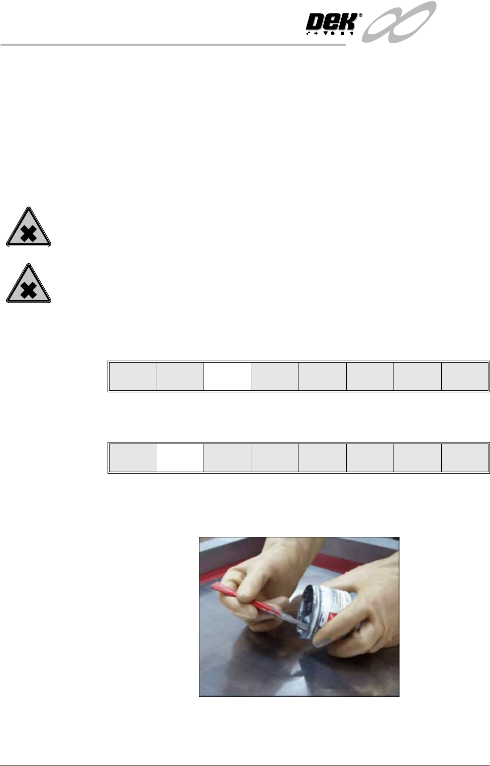 PASTE LOADING Two options are provided for loading paste onto the screen, Manual Load and