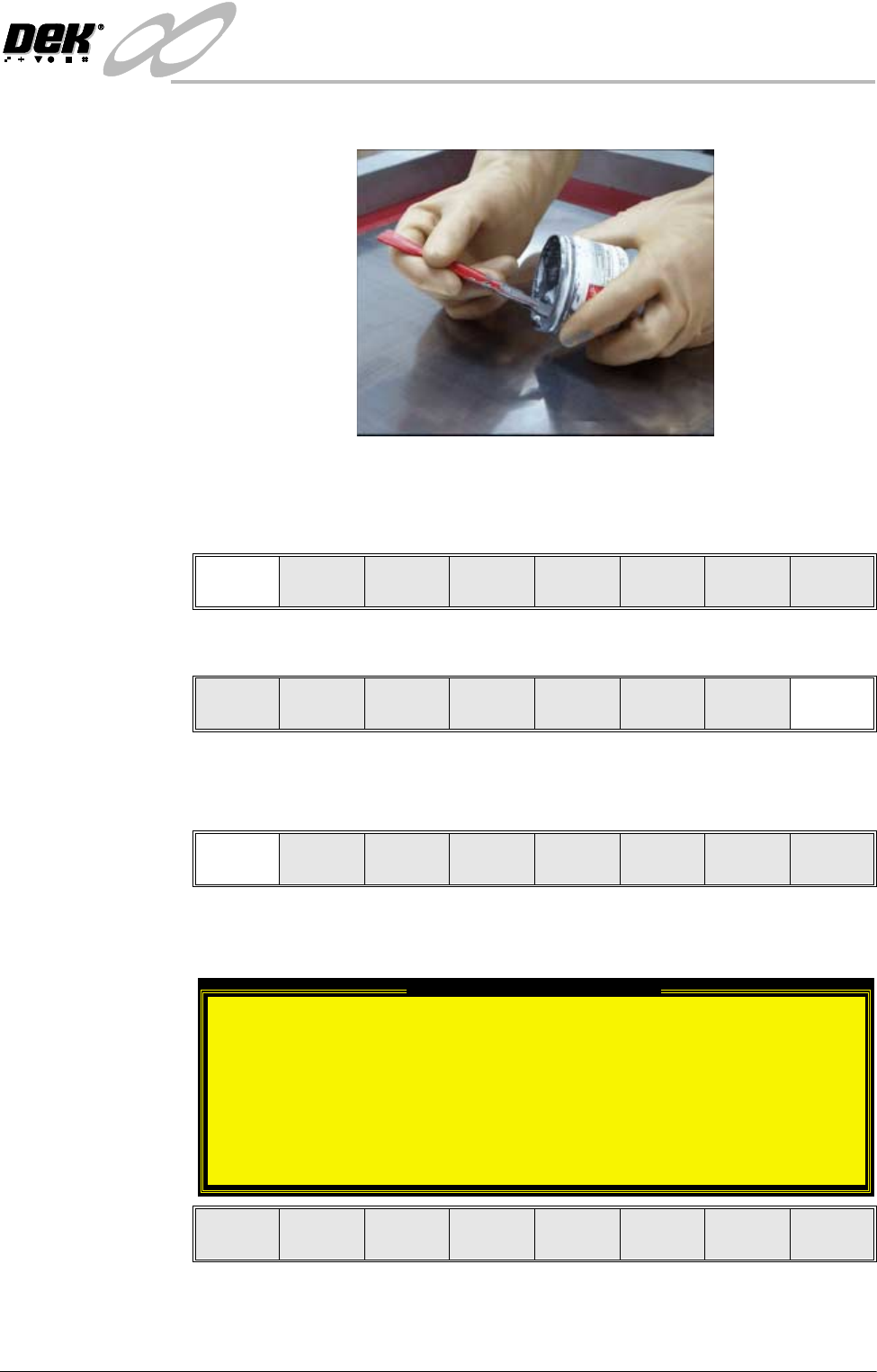 Dispense. If using squeegees without paste dispenser go to Section Manual