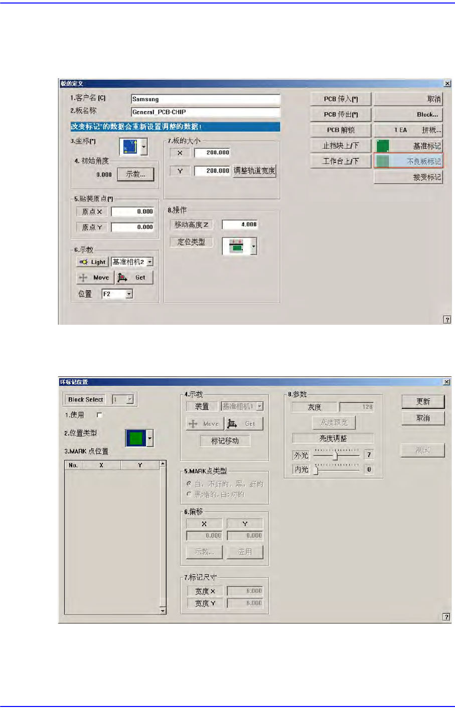 备 注 由于所有的贴装坐标、基准标记与各种标记坐标都以相对于板原