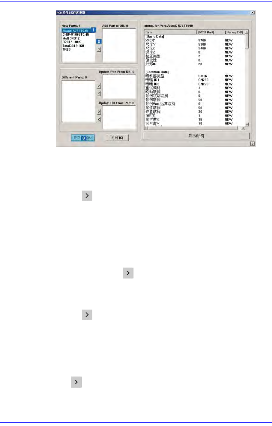 单击 按钮在<New Parts:>列表框或<Different Parts:>列表框中增加要登