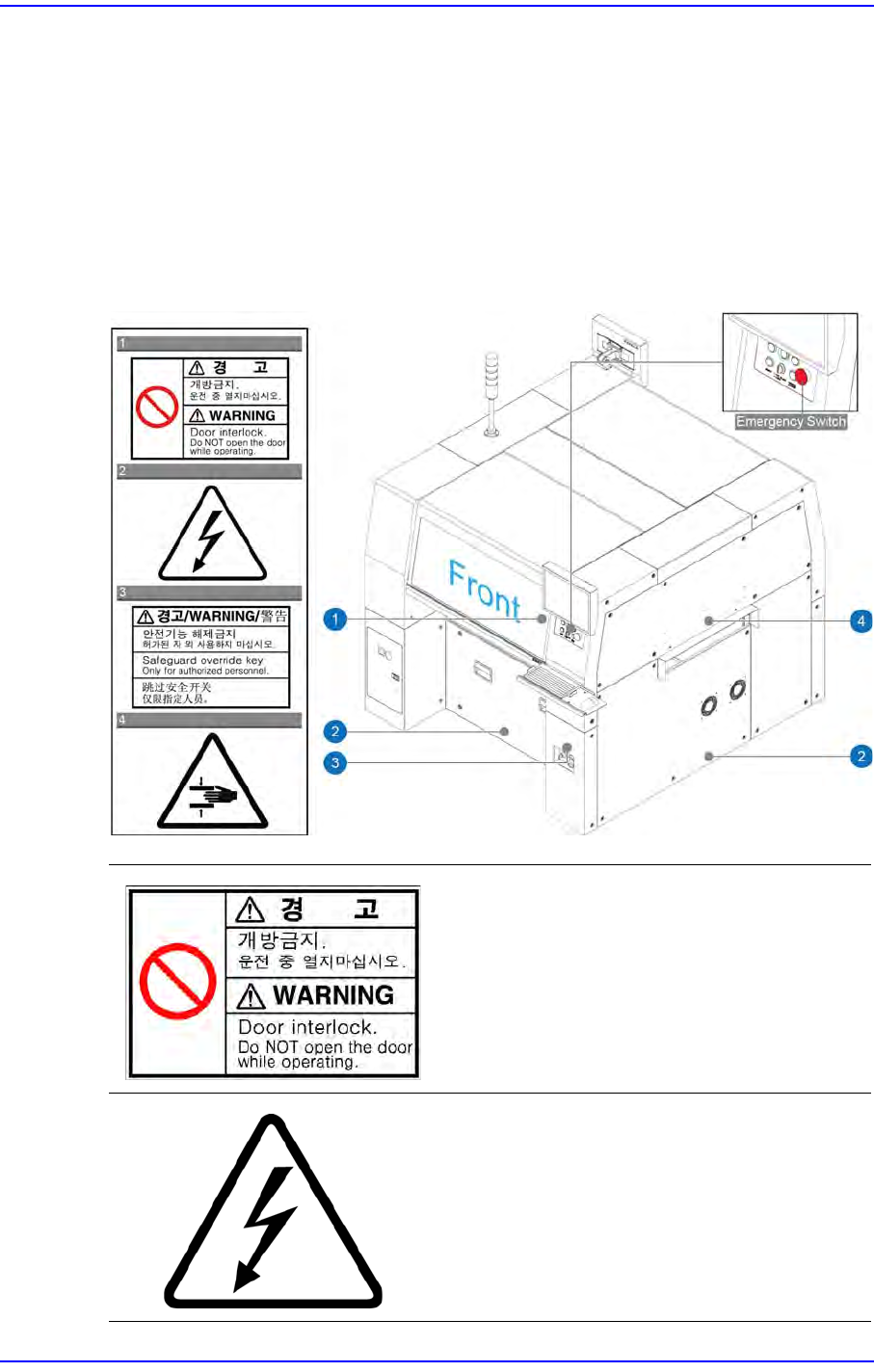 标签脱落或损伤时请参考相应图解在指定的位置上粘贴新标签。有关标签订购或改