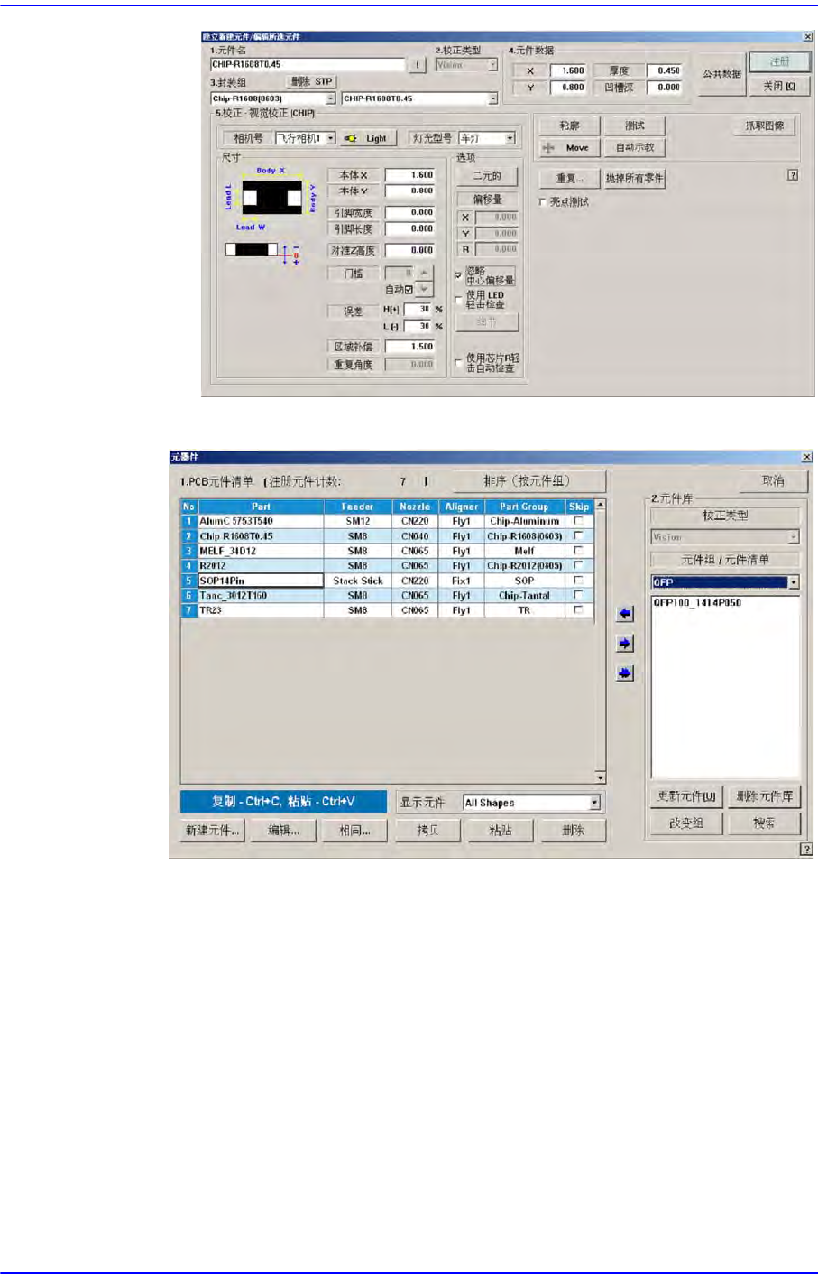 9-13 Step Programming 选择一个元件后单击 < 确定 > 按钮, 在 <1. 元件名 > 编辑框输入选定文 件的 文件名。 选择相当于选定元件的 < 封装组 > , 必要时修改选 定元件 Profile 中的元件 信息以适应选定元件。 单击 < 注册 > 按钮, 把元件登记到 PCB Part List 。
