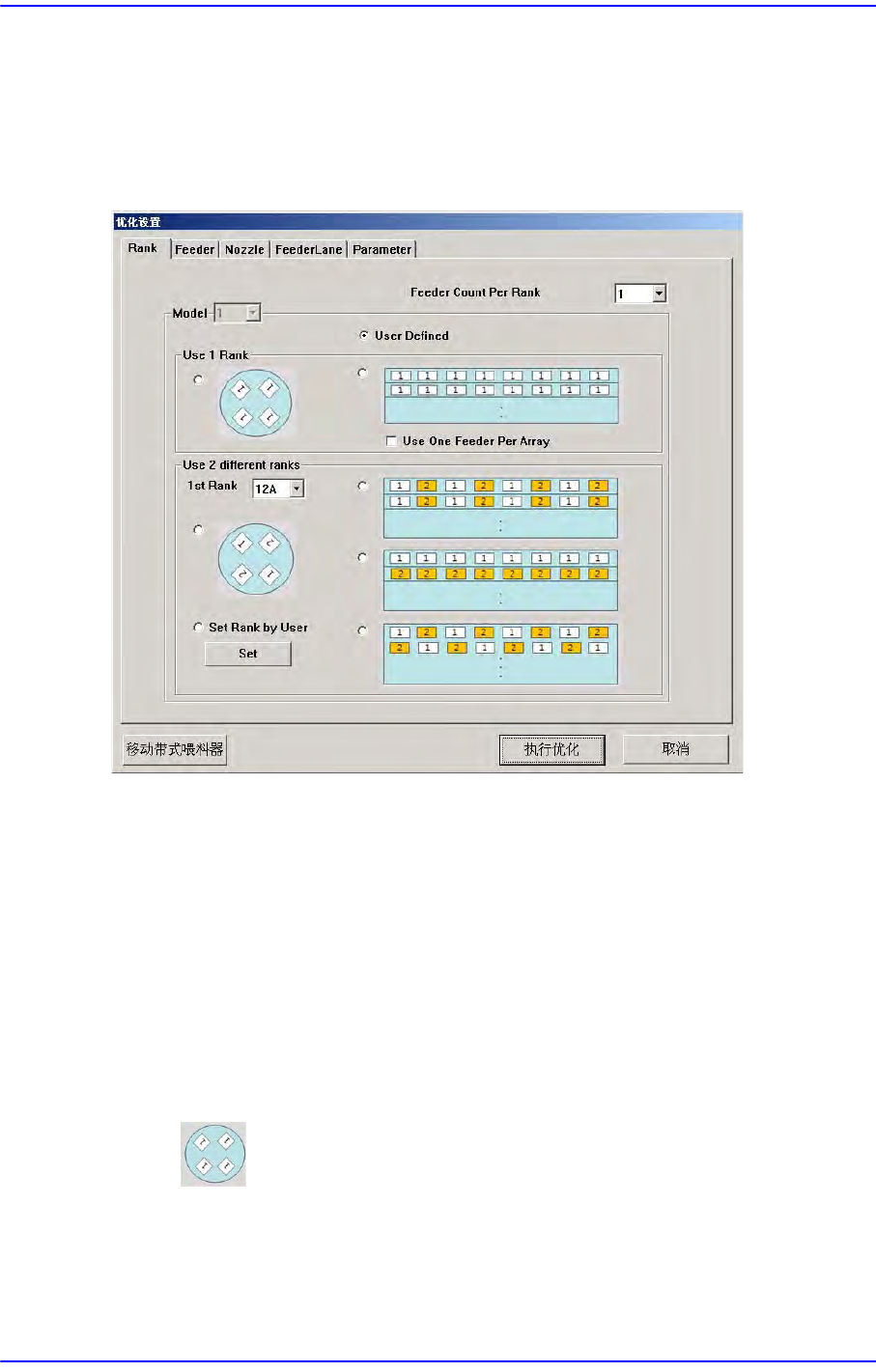 12-12 Fast Flexible Placer SM481( L) Administrator’s Guide 12.4. Optimization 12.4.1. 优化 根据照明用 PCB 的特性按照 LED 的等级 (Rank) 自动地为贴装点配置供料器。 图 12.3 “ 优化设置 : Rank” Tab 对话框 该对话窗口允许使用者根据 LED 照明用 PCB 的特性选择作业类 型而优化供料器配 置。 一般来说, 如 果需…