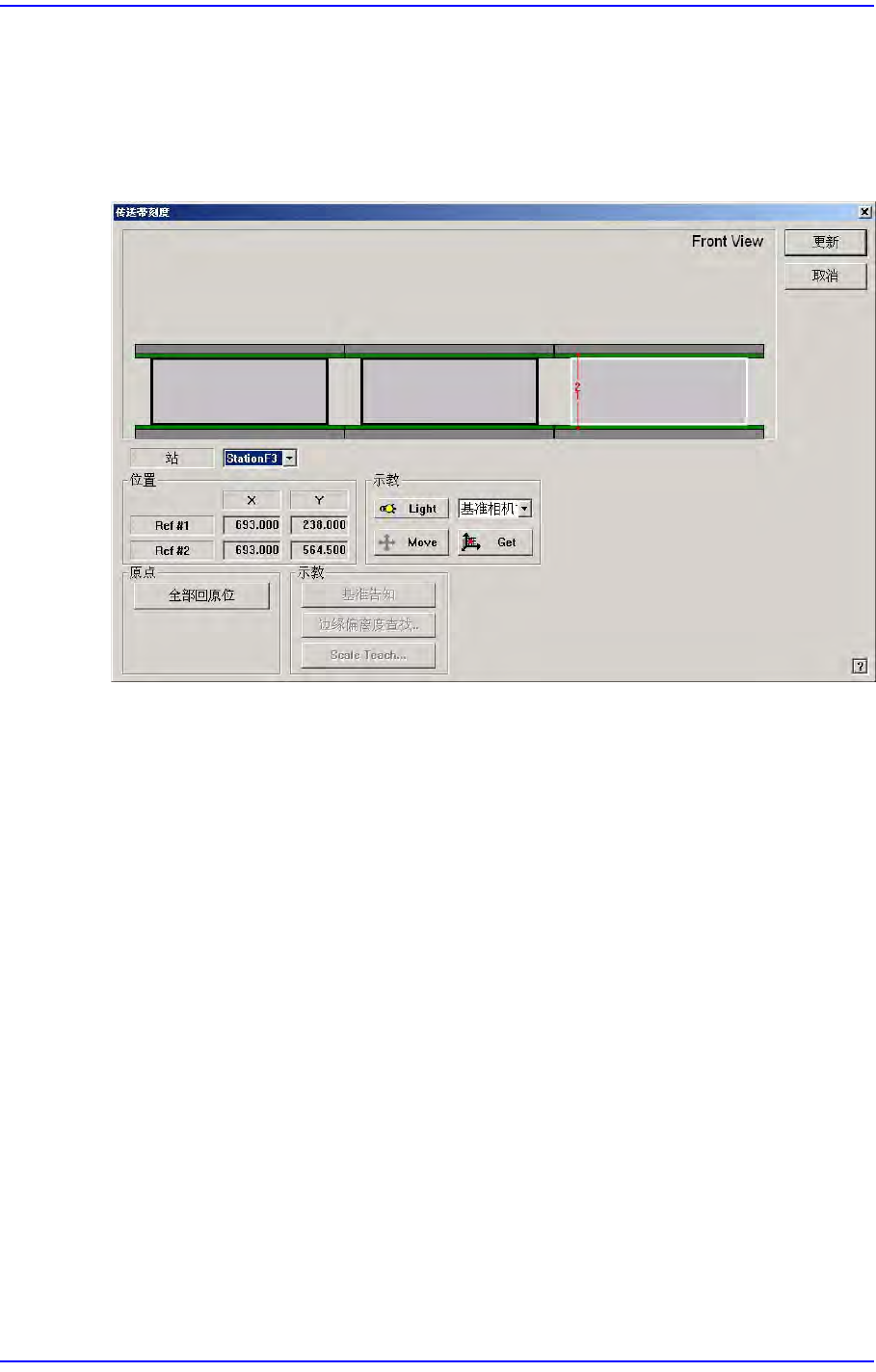 14-31 Machine Calibration 14.3.4. Conveyor Calibration 在设备的初始安装过程中设置校 准 (Calibration) 。 只有 在对输送带 ( 传送带 ) 进行了 机械调整后, 操作员才能重新加以调整。 图 14.9 "Conveyor Calibration" 对话框 < 站 > 组合框 选择区段 (Station) 。 < 位置 &g…