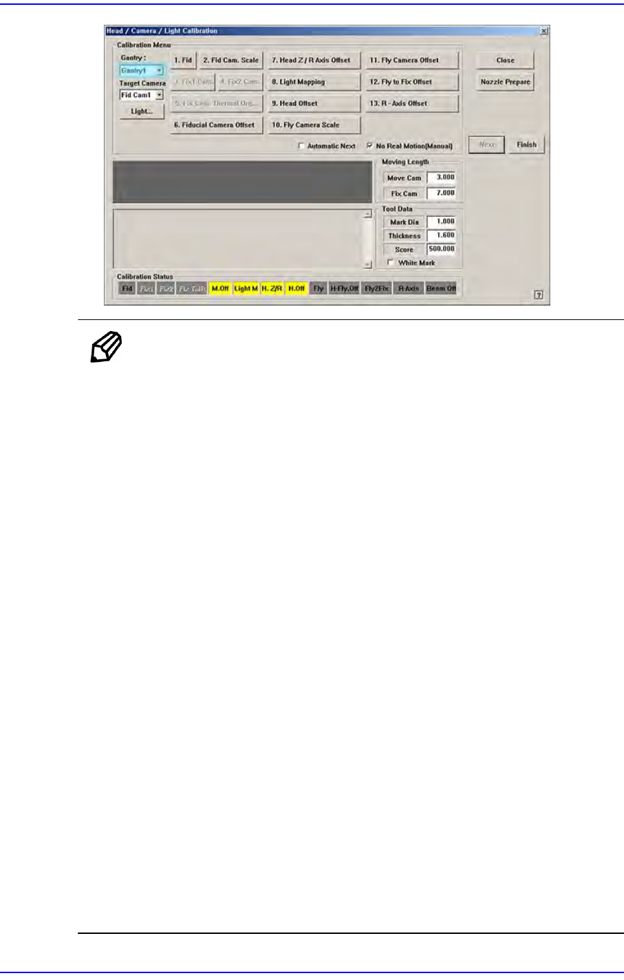 14-54 Fast Flexible Placer SM481( L) Administrator’s Guide 11 . < G a n t r y > 组合框中选择 Gantry2 后, 与 Gantry1 相 同的方式执行校正。 结果值可在 Head Offset 对话框中确认。