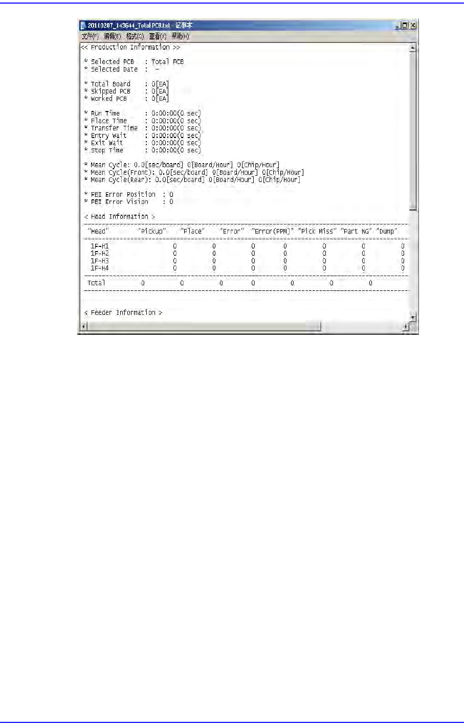 18-5 生产信息管理 <PPM<->%> 按钮 转换表示的单位。 (PPM<->%) < 复位 > 按钮 初始化全部显示信息。 < 关闭 > 按钮 关闭画面。 18.1.2. Head 表示各磁头的作业信息, 显示跟贴装有关的 全部统计信息。