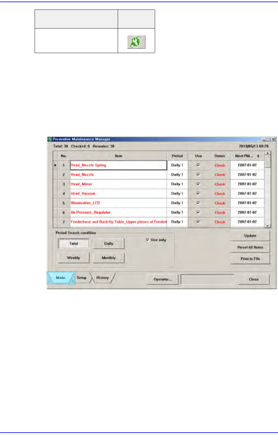 19-2 Fast Flexible Placer SM481( L) Administrator’s Guide 19.3. 画面的组成 PM Manage r 由 Main 画面 , Setup 画面 , History 画面构成。 最初执行 PM Manager 时基 本上出现 Main 画面。 Main 画面 图 19.2 PM Manager 的 Main 画面 Setup 画面 没有检查项目时 PM Manager …