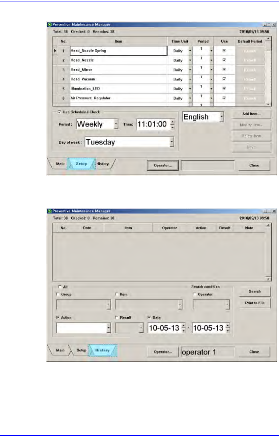 PM Manager由Main画面, Setup画面, History画面构成。最初执行 PM Manager时基