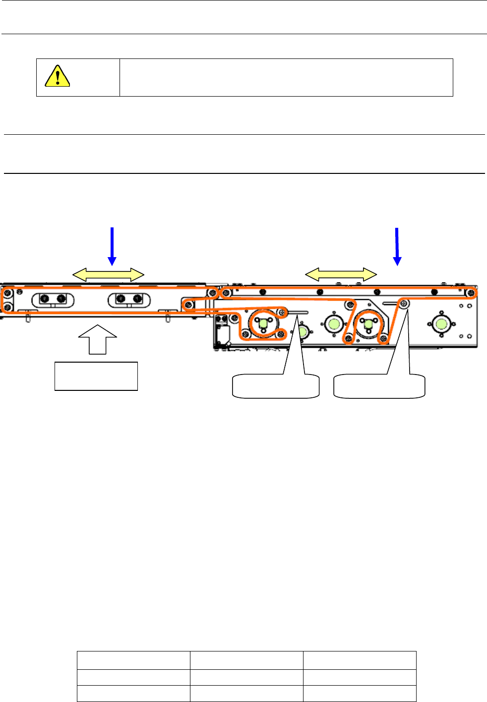 调整方法是,在传送轨道上用铅笔等以 200mm 的距离标上二个记号。