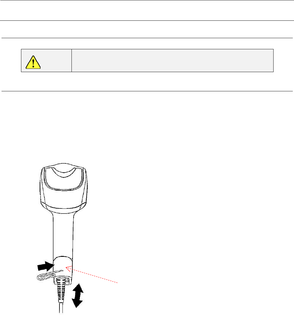2) 从条形码读取器上取下 USB 缆线。取下的方法请参照下图。