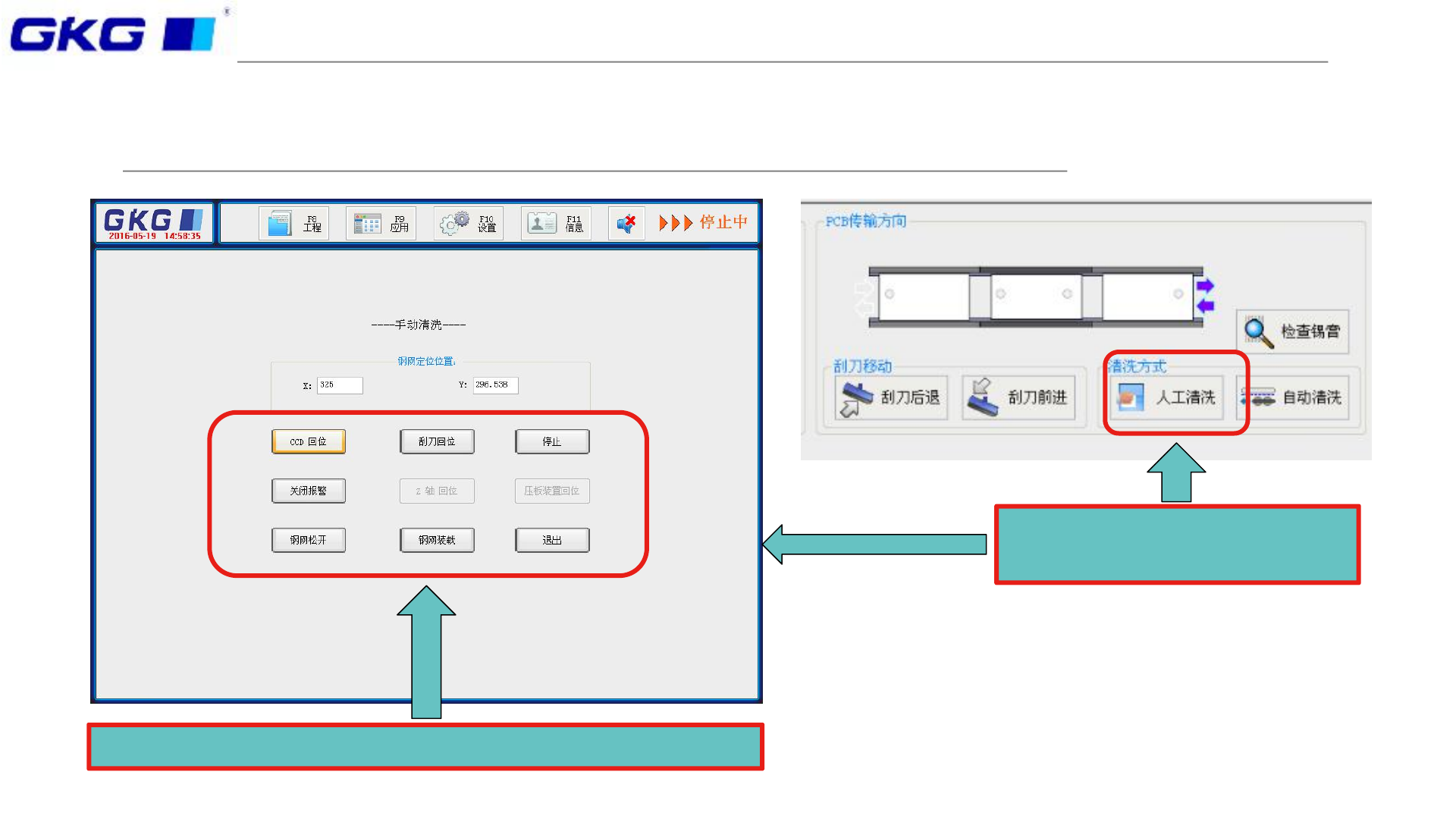 十三、功能开 关-手动清洗 点击对应快捷键,即可实现对应操作 如图,点击人工清洗,即可 进入左图所示