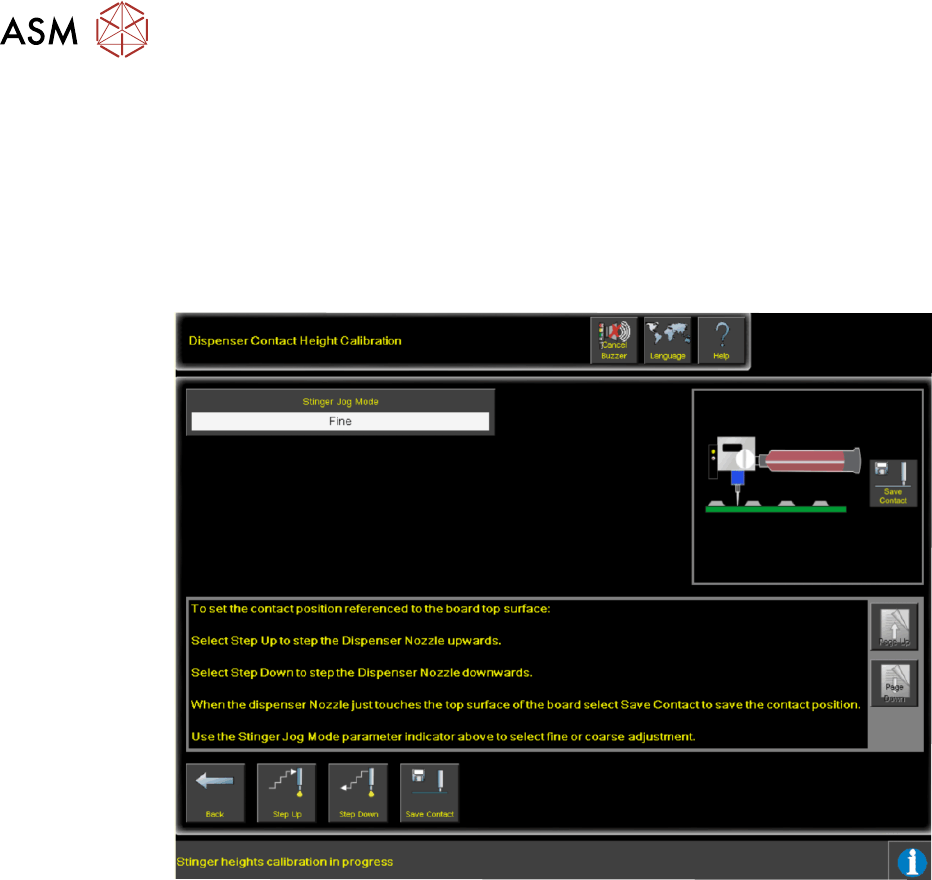 10. Select Step Up or Step Down to move the nozzle into position just above the board (a min-