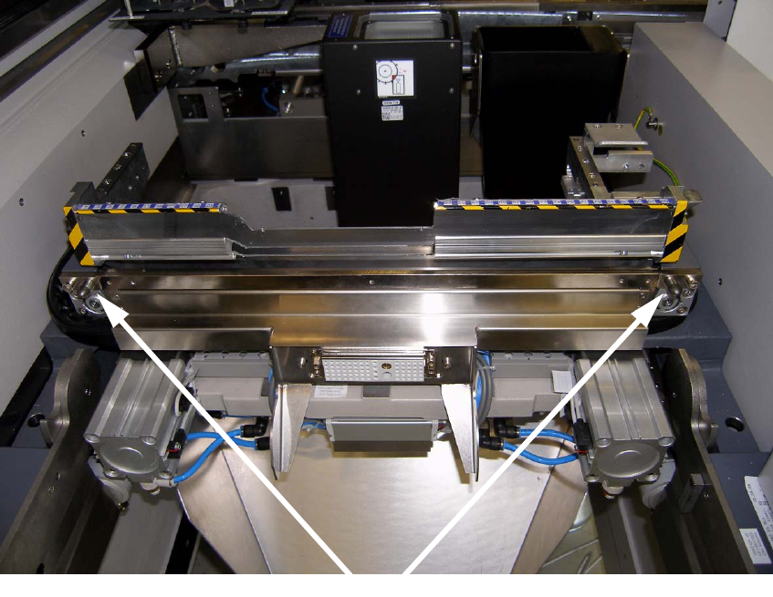 Befestigungspunkte für die Abdeckung des Gurtschneiders