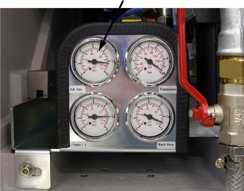 1.8.1.5 Einstellung der Druckluftversorgung für den Traystak Feeder