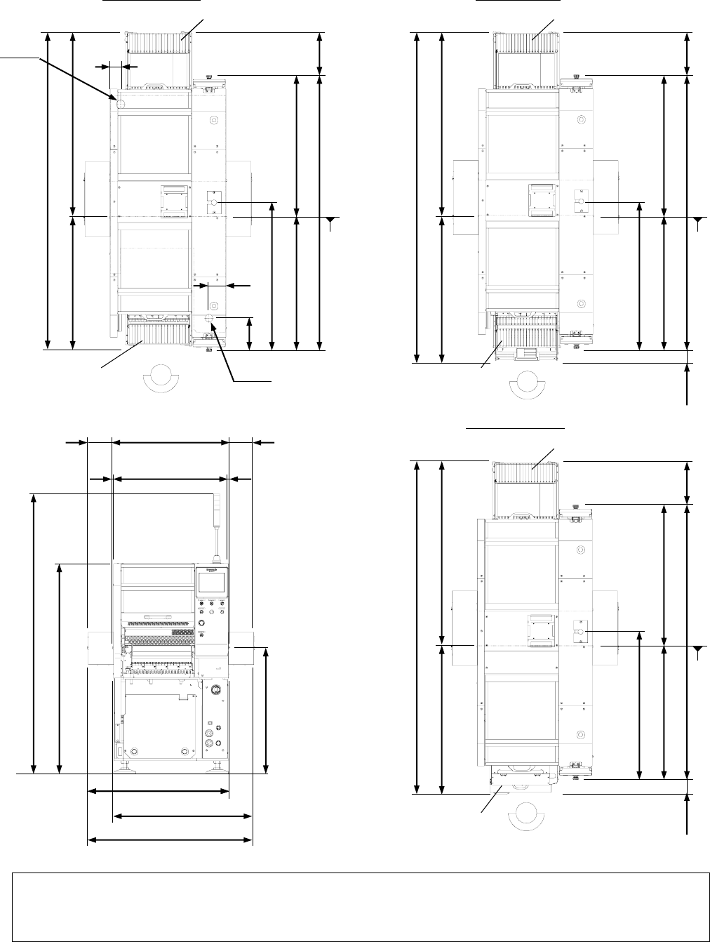 VM- 101 20 23.0 721 - 107 - 13. 尺寸图 ( 单位 : mm) Remarks • 上述示图的缩小比例与 实际机器在严 格上讲,并不完全 一致。 在研讨生产线构成和尺 寸时,请另行 索取资料。 • 本机下部如有设置通风 道等时,请确 保与主体间空隙 保持 40 mm 以上。 固定供 给部规格 交换台 车规格 1 055 95 4 2 000 1 5 00 900 1 010 ( 左延长传送 带的…