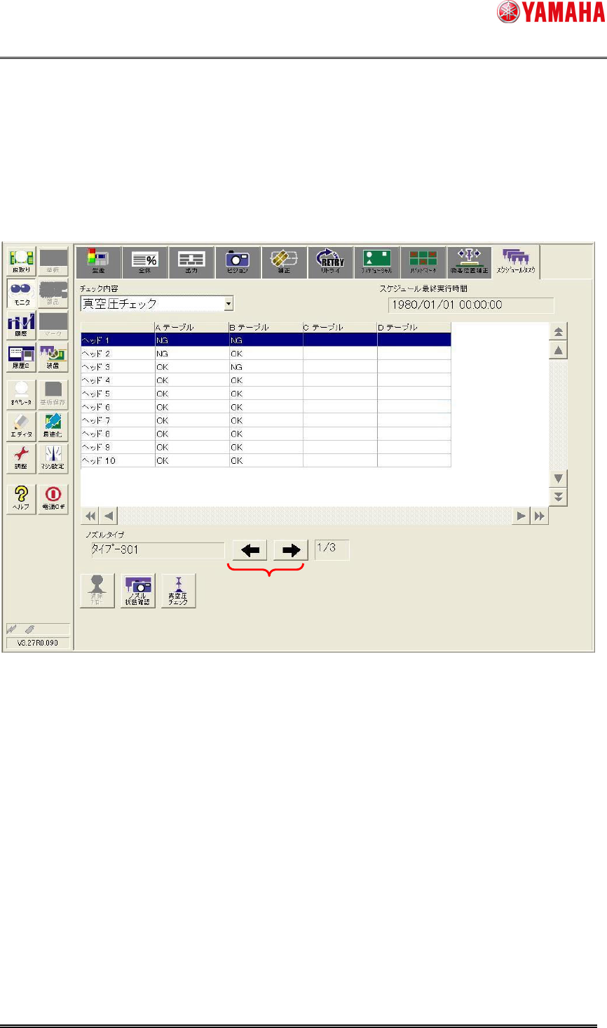 本機能は、スケジュールスペックで使用する真空圧チェック、ノズル状態確認、ノズルシャフトブロー