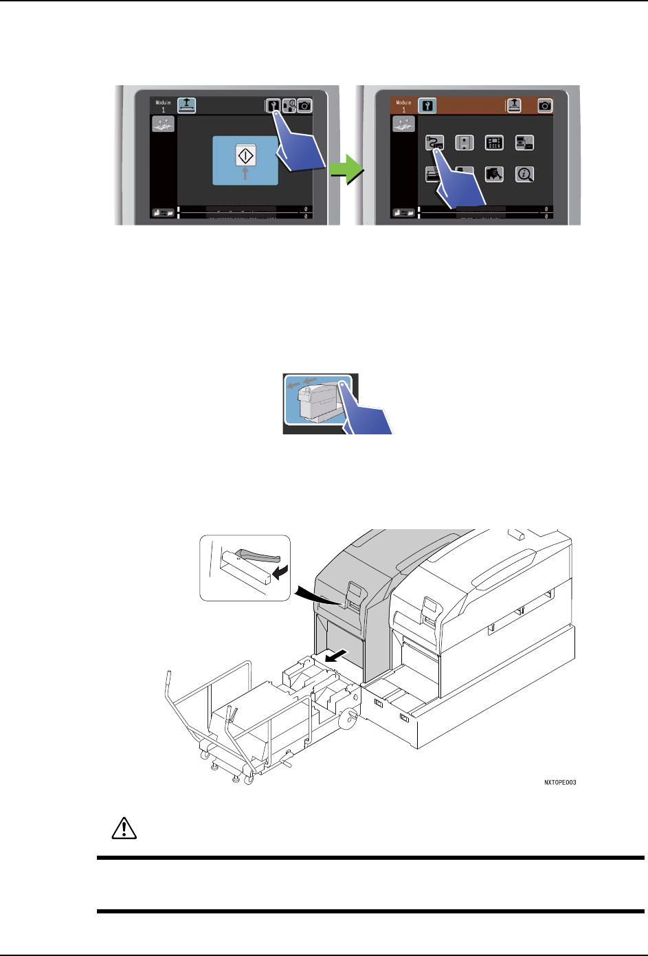 注意 )按下 「拉出模组」按键,模组主体向面前移动数厘米。请注意不要碰到身体或其他障
