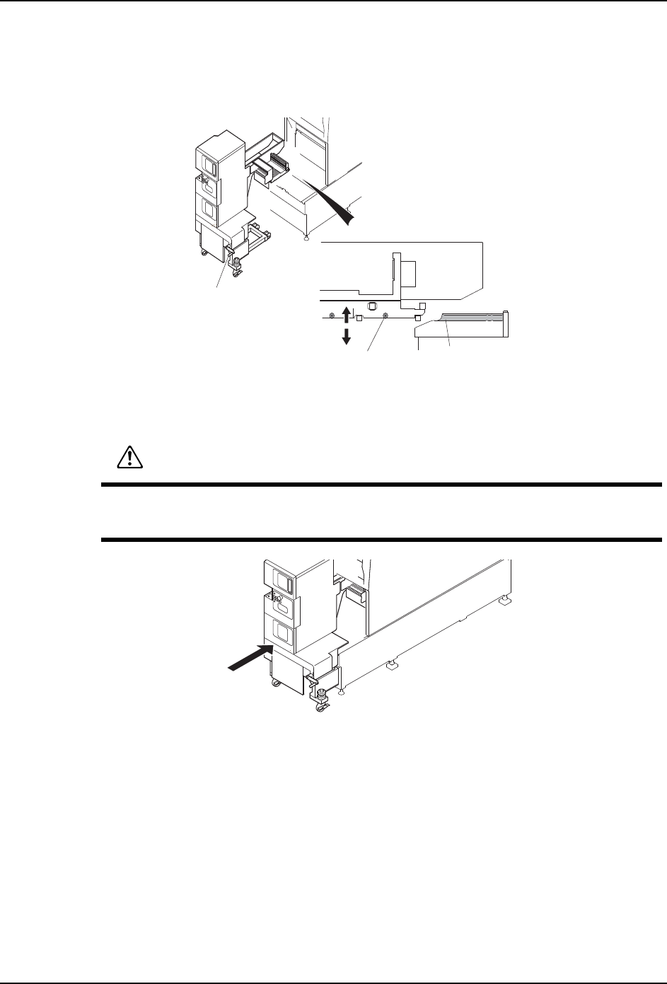 在将料盘单元 -LTC 压入机器时,请确认料盘单元 -LTC 和基座之间是否有别的操作