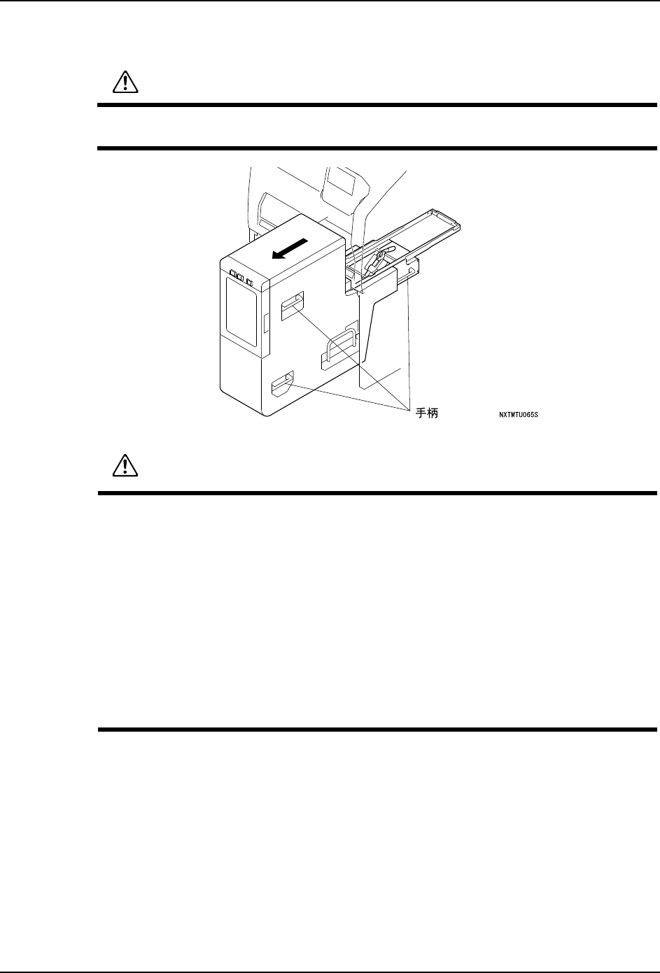 在搬运料盘单元 -M 时请 2 个操作员进行。此时,请紧紧地握住左右的手柄。料盘单元