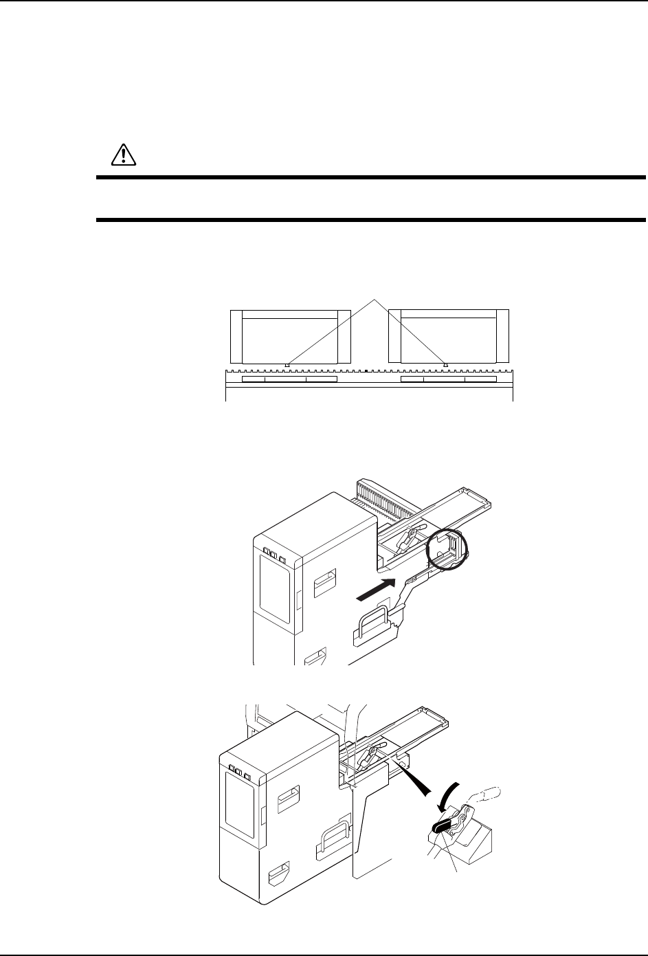 3. 将料站托架下部的料站编号粘纸作为大致目标,把料盘单元 -M 的往复臂的前端部插入