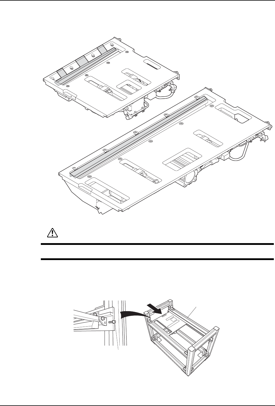 1. 请取下废料带处理单元。(详细参考 「7.4 废料带处理单元的更换」
