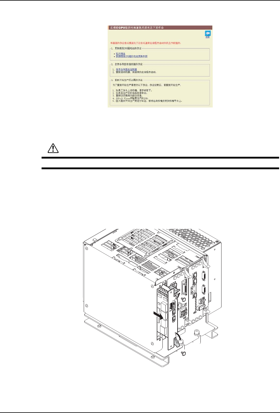 b. 单击 「模组 CPU 箱的电池切断状态下的操作」。