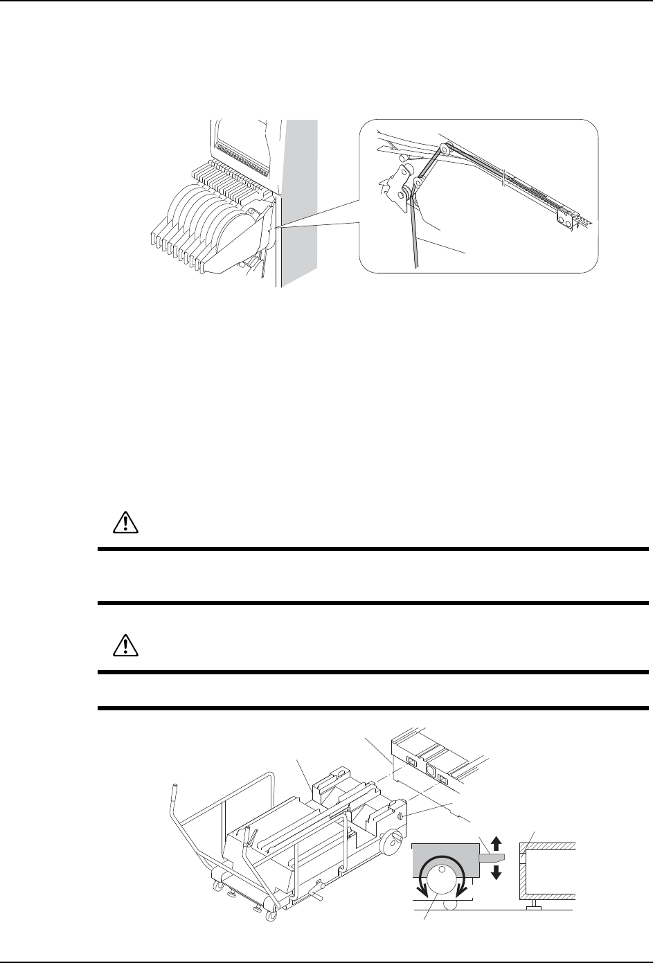 MEC-NXT3-002S0 4. 基本操作 NXT III 机械手册 95 4.2 模组的拆除 / 安装 在拆除 / 安装时使用 MCU( 模组更换 台车 )。 4.2.1 拆除的准备 在拆除模组时,请进行以下的操 作。 确认主开关 如果主开关锁定时, 请确认荷包锁是否从基座前面跳出来。 如果跳出来时, 请配置荷包锁在 不从基座前面跳出来的位置上。 ( 参照 「1.7.1 如何实施闭锁」) 拆除前盖板 请拆除模组前面的盖板。 注意 )…