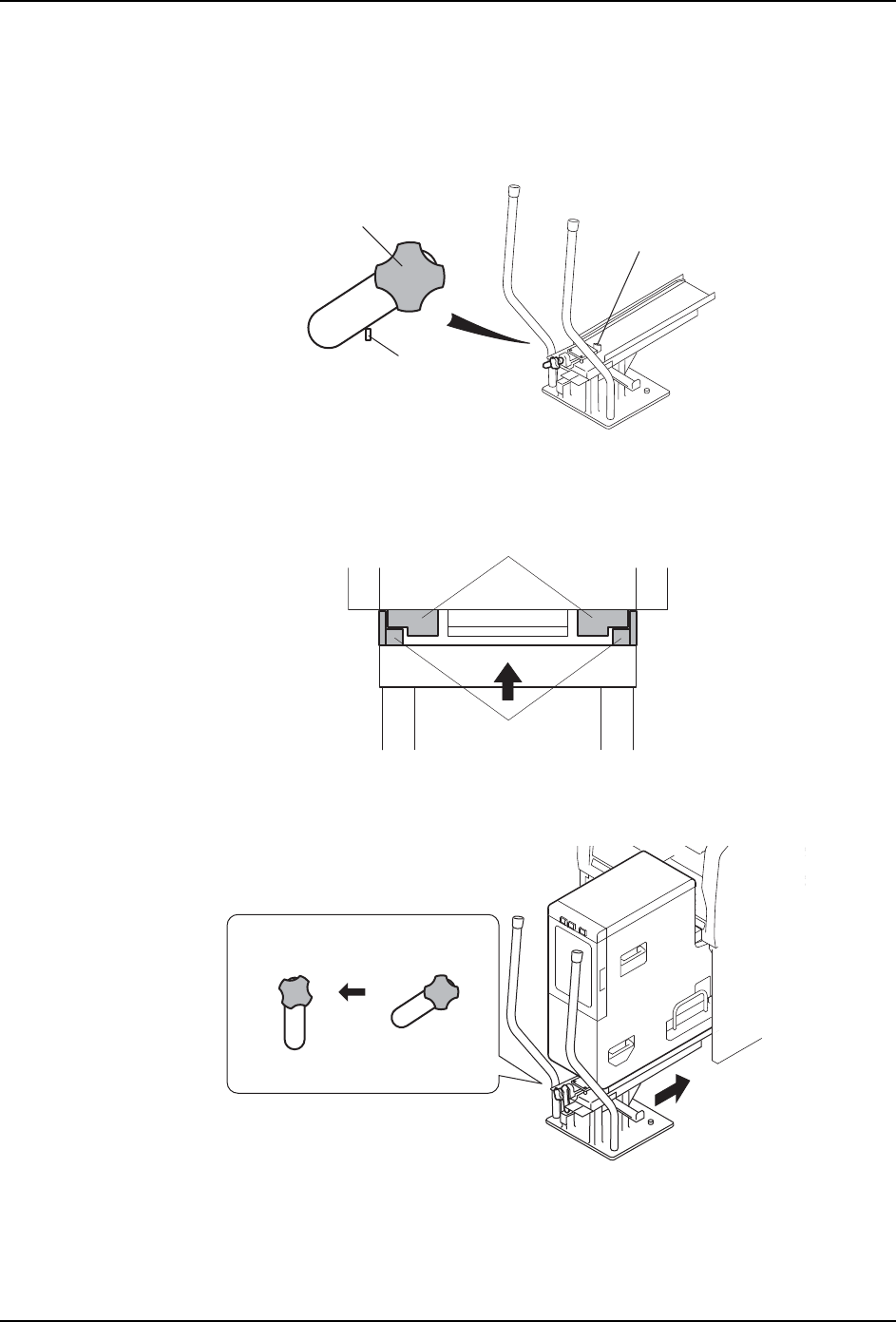 MEC-NXT3-002S0 4. 基本操作 NXT III 机械手册 155 6. 抬起料盘单元 -M 中央部的夹紧杆,松开模组侧的 夹紧。 7. 将搭载料盘单 -M 的台车慢慢地从模组中拉开。 8. 为了安全,锁定台车的脚轮。 ㍝ᢁ᷺ 01NST -0394S 警告 搭载在台车上的料盘单元 -M,重心位置较高,处于不安定的状态。 将料盘单元 -M 在台 车上保管或进行搬运时,请注意 不要翻倒。会使机器损坏或者受伤。