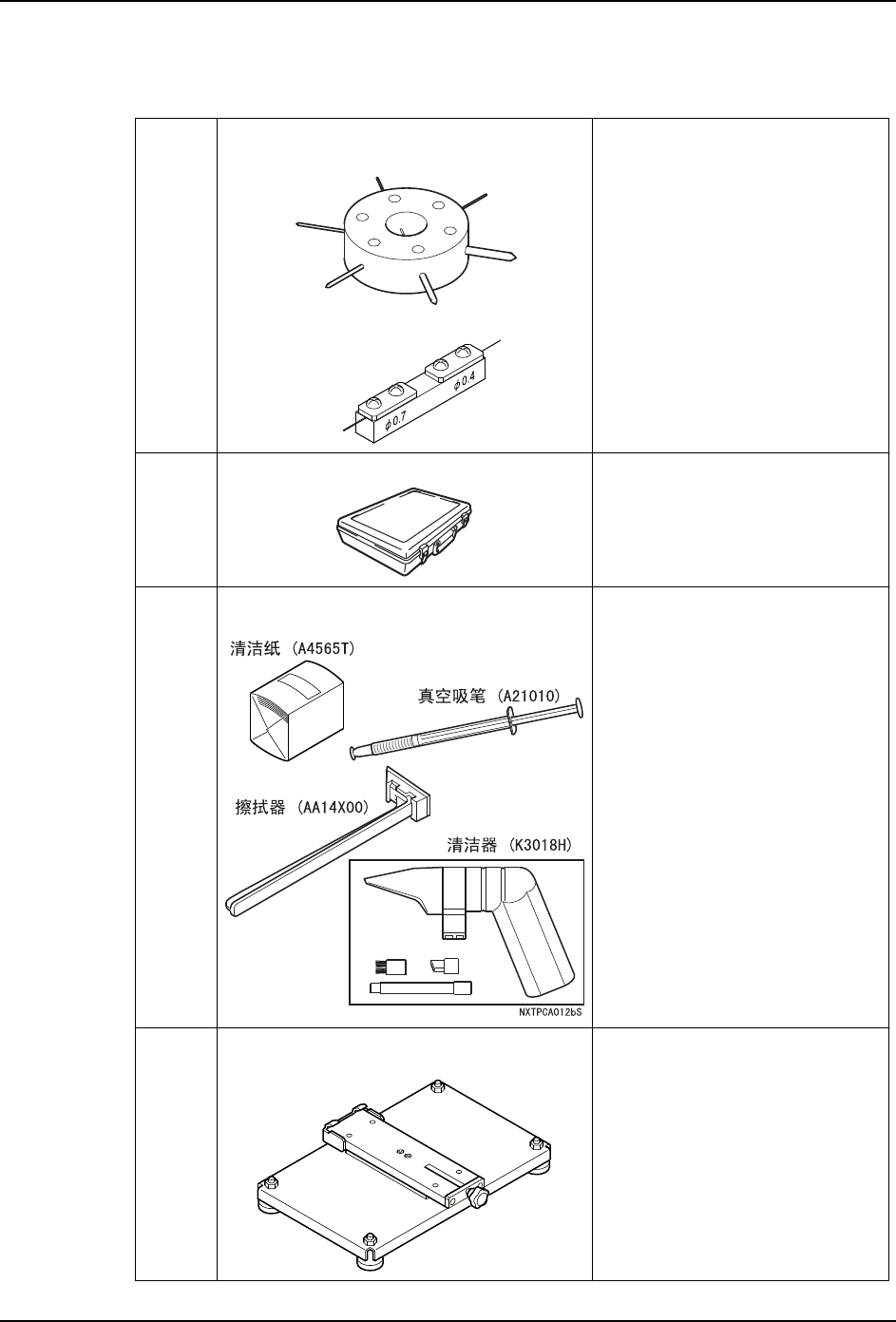 MEC-NXT3-002S0 5. 预防保养 NXT III 机械手册 159 治具 用于清洗过滤 器用的网笼 K1325C 用于清洗贴装工 作头过滤器 治具 升降杆内 O 型圈加油用治具 AA40R**,AA79X** H04,H04S/H04SF, H08,H08Q, H08M,H08MQ, H12 HS,H12HSQ, V12 工作头升降杆内 O 型圈的加 油用 AA40R**:H04,H 04S/H04SF, H08,H08Q,…