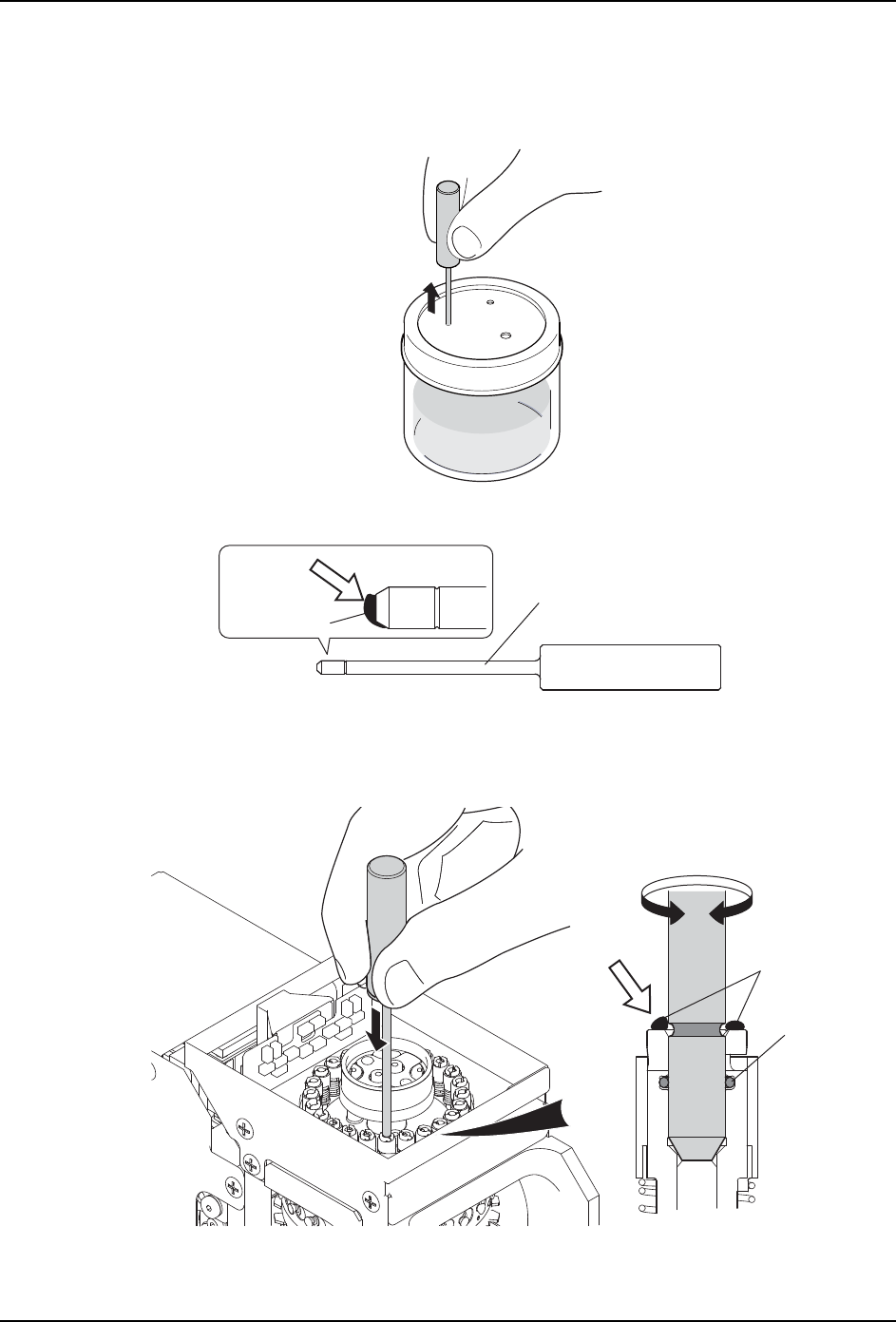 2. 在注油棒上粘附有润滑油的时候,必须将注油棒插入到尺寸相配的插入孔中。
