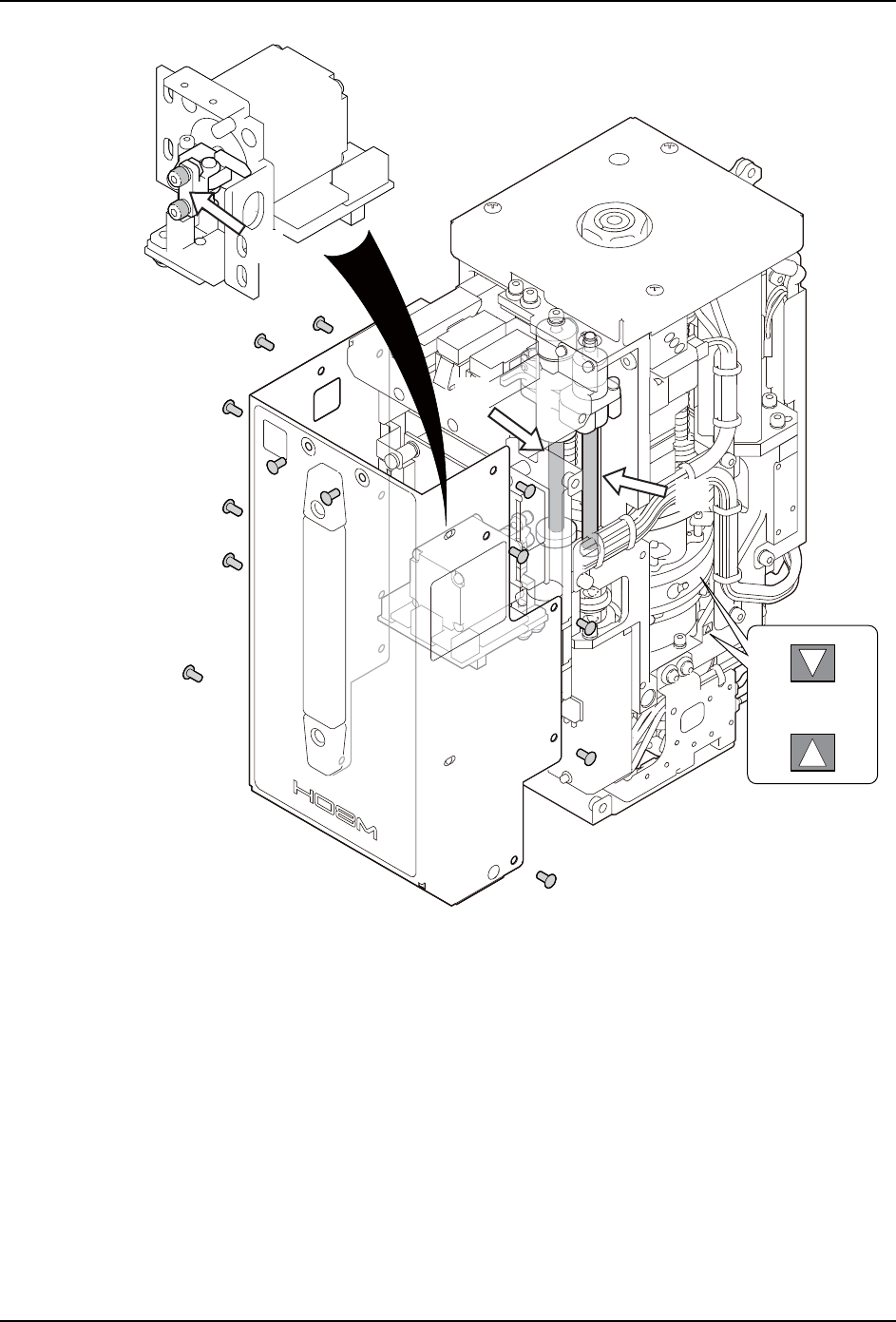 5. 预防保养 MEC-NXT3-002S0 258 NXT III 机械手册 5.10.10 H08M/H08MQ 工作头的加油 〈伺服轴〉 备注 )对 于加油量少的加油 作业,推荐使用治具 的注射筒 (S61439) 。在注射筒上有刻度, 请作为加油量的基准。 1. 拆下贴装工作头。 (详细请参考 「4.3 贴装工作头的拆除、安装」 。) 2. 拆除正面盖板。 3. 旋转 R 轴,使工作头部与本体上附带的三角标记的位置 对齐。 注意…