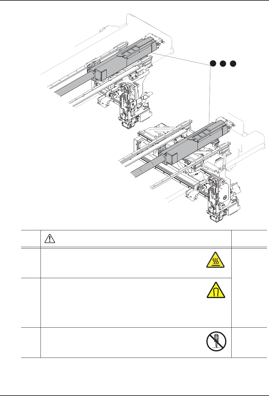 运转刚刚停止后,请不要直接触摸 Y 轴的线性马达部分。 4.3, 4.6,