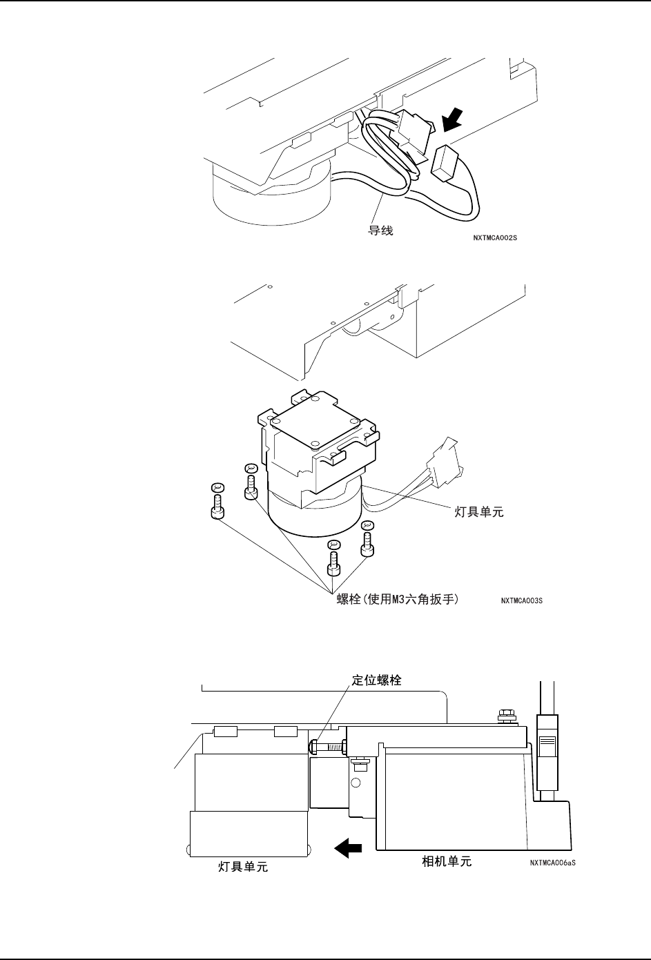 MEC-NXT3-00 2 S0 7. 部件的更换 NXT III 机械手册 425 7. 拆除相机单元后部的插座。 8 . 拧 松 螺 栓( 2根)帽 和 六 角 螺 栓( 2根) 、 将 相 机 向 后 方 滑 出 并 取 下 。 注意 )请绝对不要松动相机单元的螺栓和定位螺栓。 1;70&$6E Ⳍᴎऩܗ ݁㾦㶎ᷧ 㧔 Փ⫼0݁㾦ᡇ 㧕 㶎ᷧᐑ 㧔 Փ⫼0݁㾦ᡇ 㧕