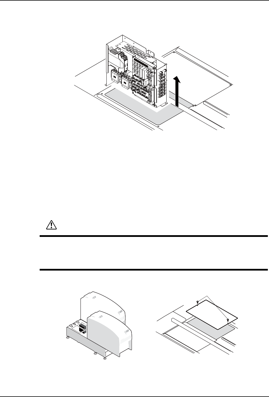 拆除基座上盖板,在其开口部进行作业时,请注意没有其他作业者拉出 / 插入模组。手