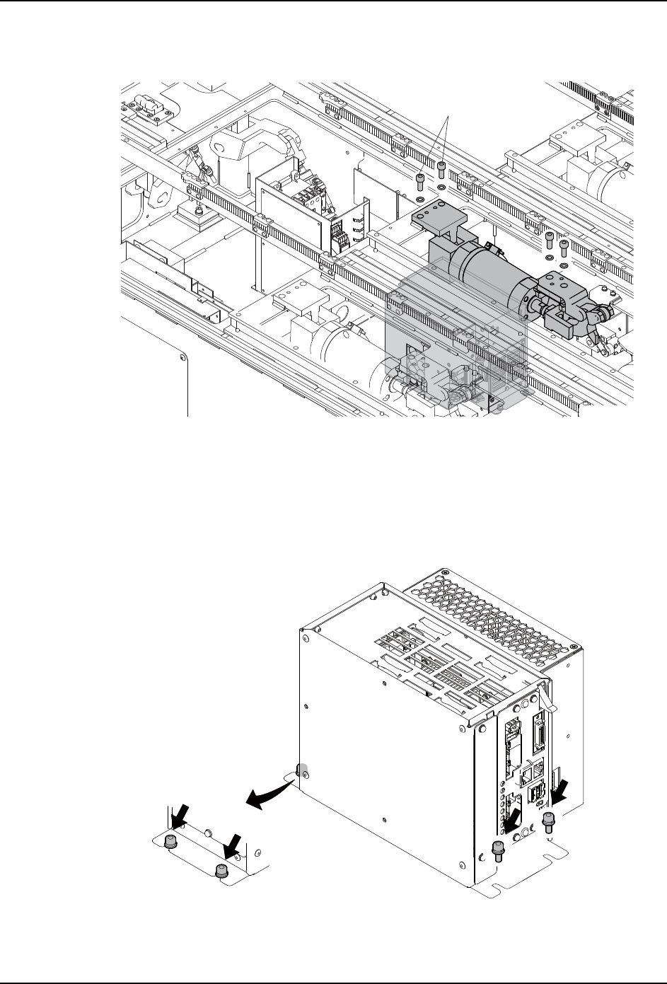 MEC-NXT3-00 2 S0 7. 部件的更换 NXT III 机械手册 451 7. 请从基座后方取出 CPU 箱。在取出 CPU 箱时,请注意不要碰到周围的物品。 8. 请将 CF 卡从旧的 CPU 箱取出,安装到新的 CPU 箱中。详细请参考 「7.10.3CPU 电路板 的更换」 。 9. 请安装新的 CPU 箱,连接插头。 注意 )· 安装 CPU 箱的时候,请注意不夹住电线。 · 在导线和电路板上, 各自用数字和字母记载…