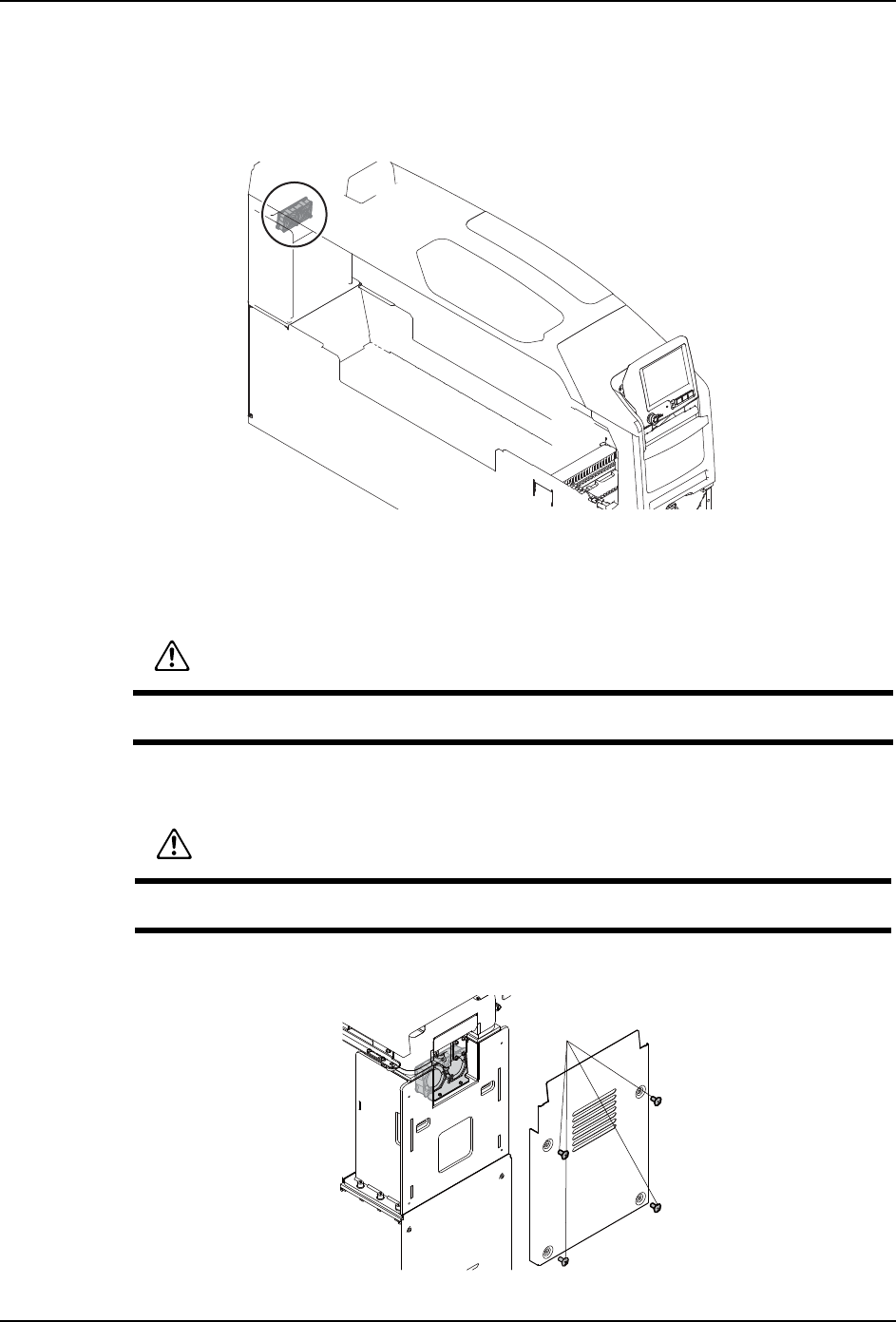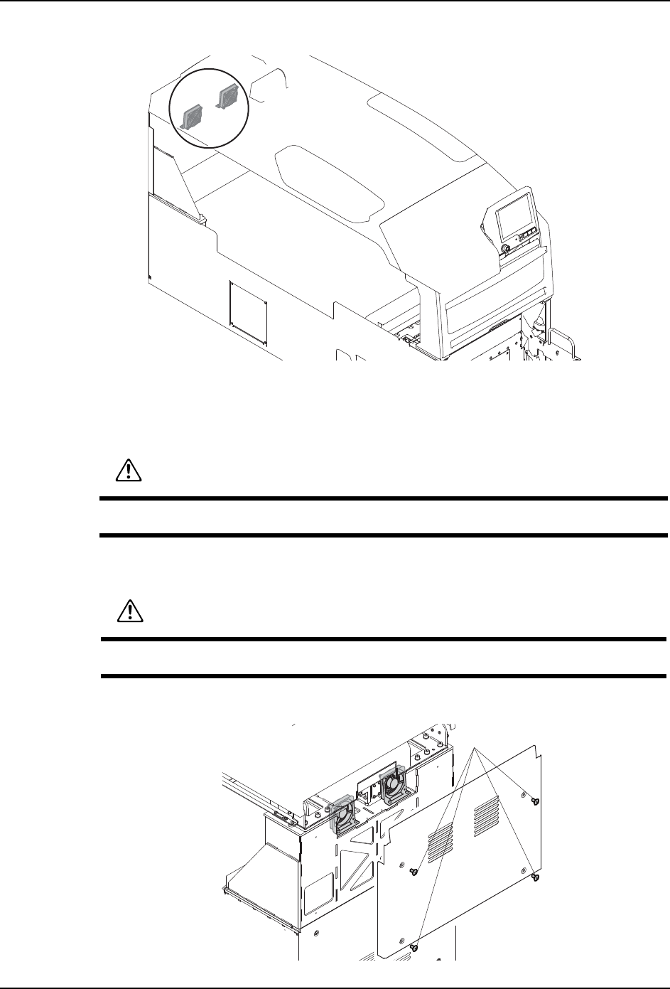 备注 )更换模组冷却风扇时,有必要拆除侧盖板。在模组后方有连接盖罩条的时候,因为会