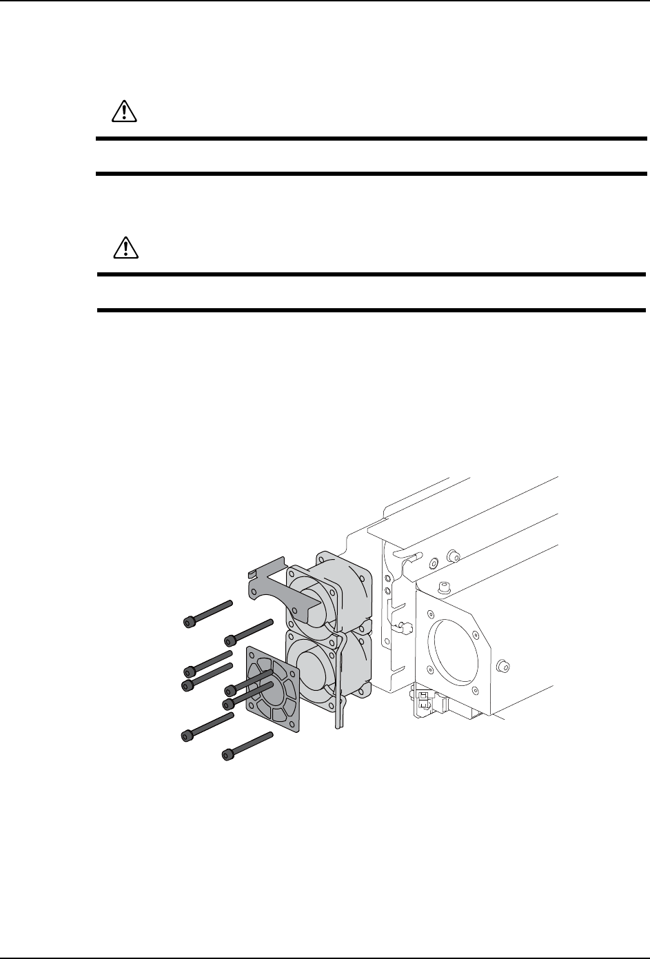 7. 按照与取下时相反步骤安装新的冷却风扇,将机器返还到原来的状态。