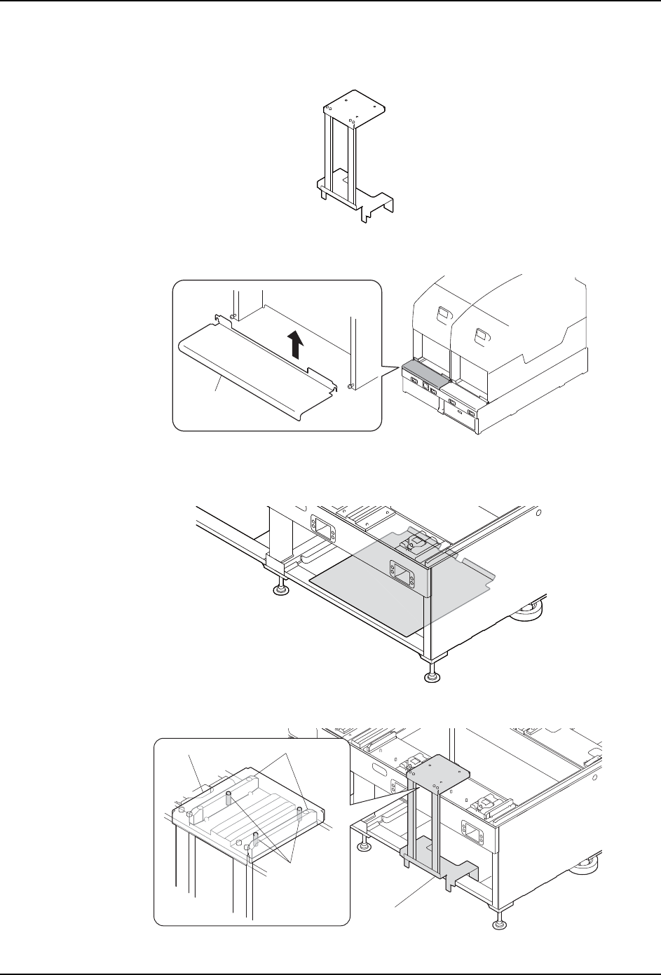 4. 基座设置治具。请使治具的定位销进入 2 个轨道内侧进行设置。