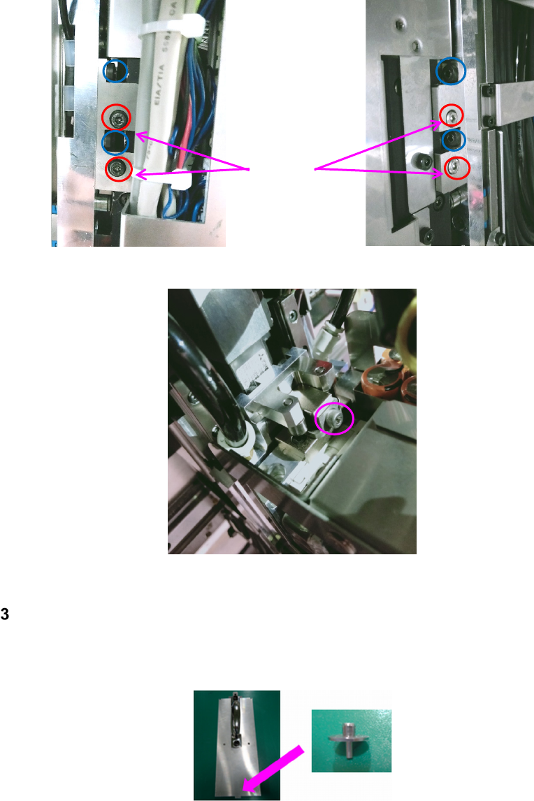 第 2 章 操作顺序书 2- 3. 校准 67 2 取下侧面的螺丝。蓝色 标记的 4 个 红色标记的 4 个 3 取下上部的螺丝。 4 拆下贴片头。 安装测定 Z 轴原点用的治具贴片头。 1 把基准治具吸嘴装到 测定 Z 轴原点用的治具贴片头 上。 将 M2 的 2 个螺丝在不脱落 的程度下均匀 进行 固定。 2 安装治具贴片头。 固定螺丝